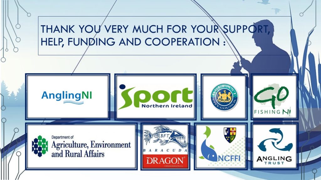 Podziękowania dla Baracuda Fishing Tackle za dofinansowanie do nagród .Podziękowania dla Lough Agency za przybycie przed zawodami i pomoc w zakupie odpowiednich licencji.